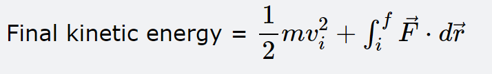 scene.caption = "Final kinetic energy = \\( \\dfrac {1} {2}mv_i^{2}+\\int _{i}^{f}\\vec{F}\\cdot d \\vec{r} \\)"